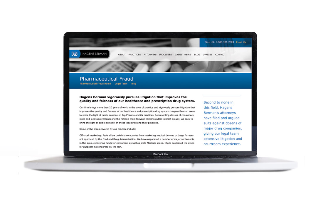 Several years after we designed the original logo for Hagens Berman we helped the firm reposition themselves with a rebranding as they began pursuing larger class-action cases.